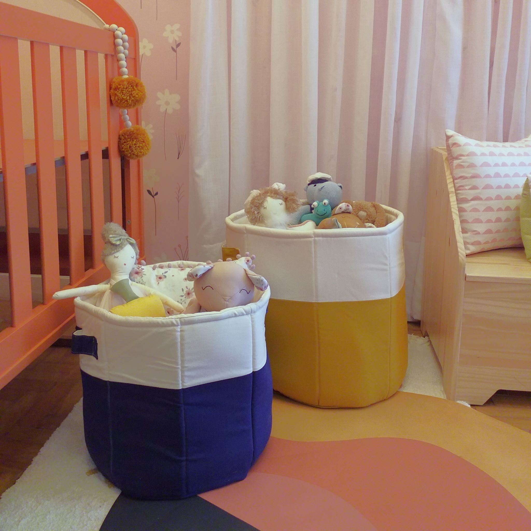O cesto azul marinho para guardar brinquedos é uma peça superútil e linda! Feito em sarja e estruturado com espuma, o cesto fica estruturado mesmo quando está vazio. Seu design é clean e atemporal, por isso, combina com qualquer estilo de decoração e acompanha o crescimento dos pitucos e pitucas. Pode ser lavado à máquina.