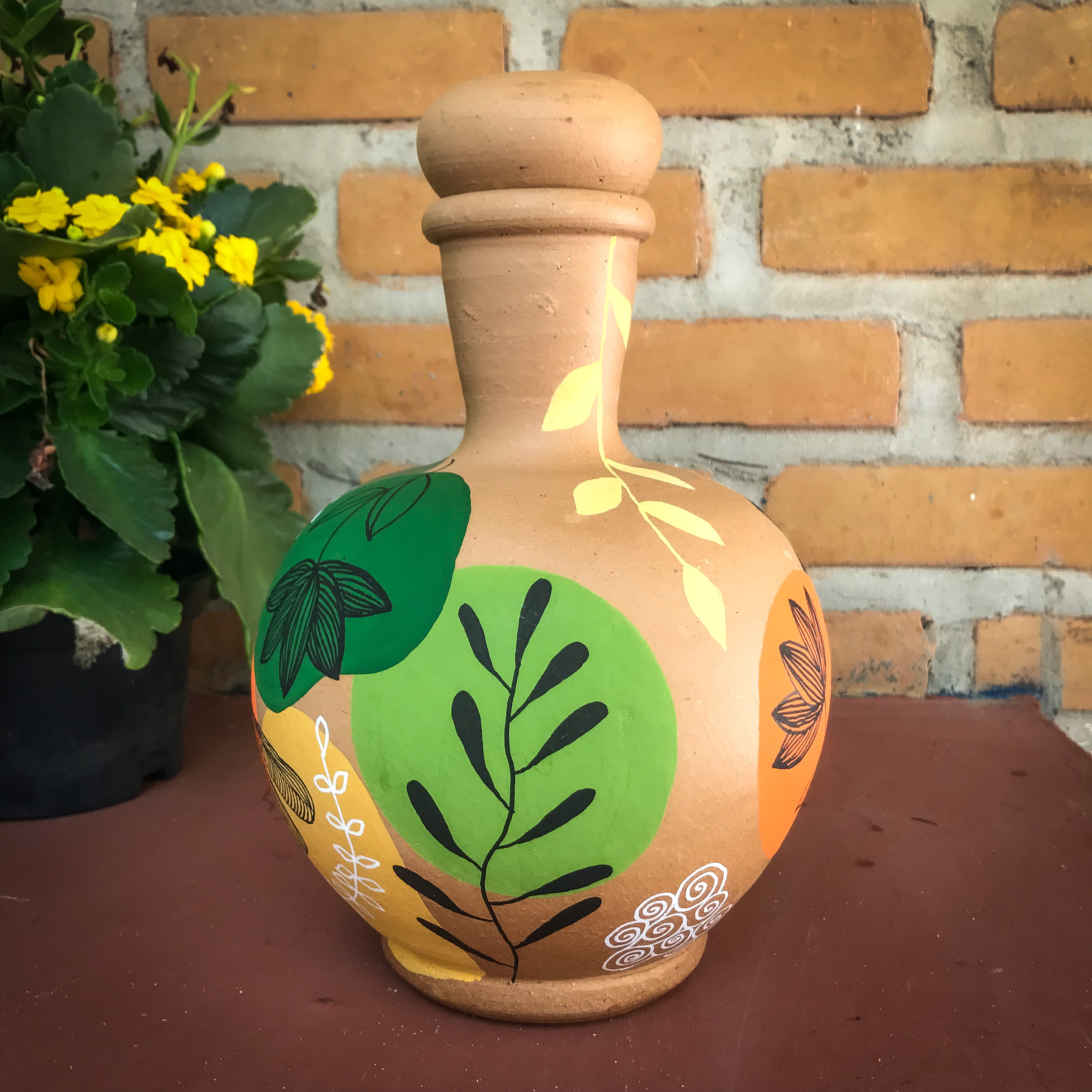 Conjunto Moringa de cerâmica de 1,5 litros e DE BRINDE vai 1 copo de cerâmica 200ml pintados a mão